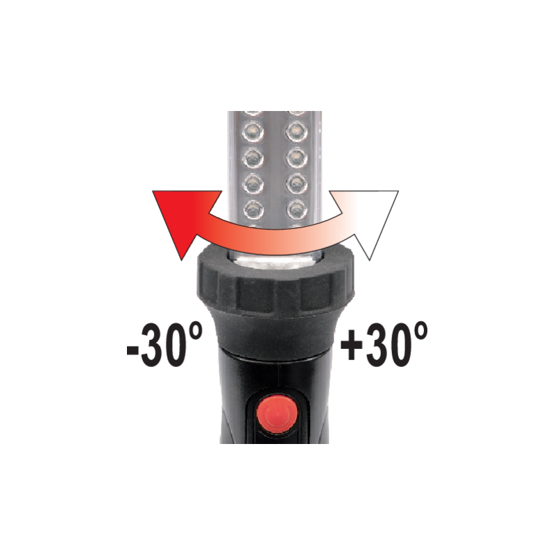 Dodatkowe cechy, takie jak wyłącznik, kąt pracy 30˚, oraz wysokiej jakości magnesy i haczyki, zapewniają użytkownikowi pełną funkcjonalność i łatwość obsługi w różnych warunkach pracy.