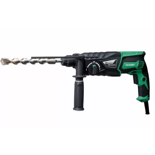 Młotowiertarka z podkuwaniem Hitachi DH26PC posiada 3 funkcje: wiercenie, wiercenie z udarem i podkuwanie. Sprzęt posiada uchwyt SDS-Plus oraz funkcję zmiany kierunku obrotów prawo/lewo. Wyposażona w sprzęgło bezpieczeństwa oraz elektroniczną regulacją prędkości obrotowej. Młotowiertarka wykonana jest według zasad BHP oraz najnowszych technik. Materiał z jakiego jest wykonany również pochodzi z najwyższej półki dzieki cz,mu produkt jest o wiele bardziej trwały do innych modeli. Posłuży wam wiele lat.