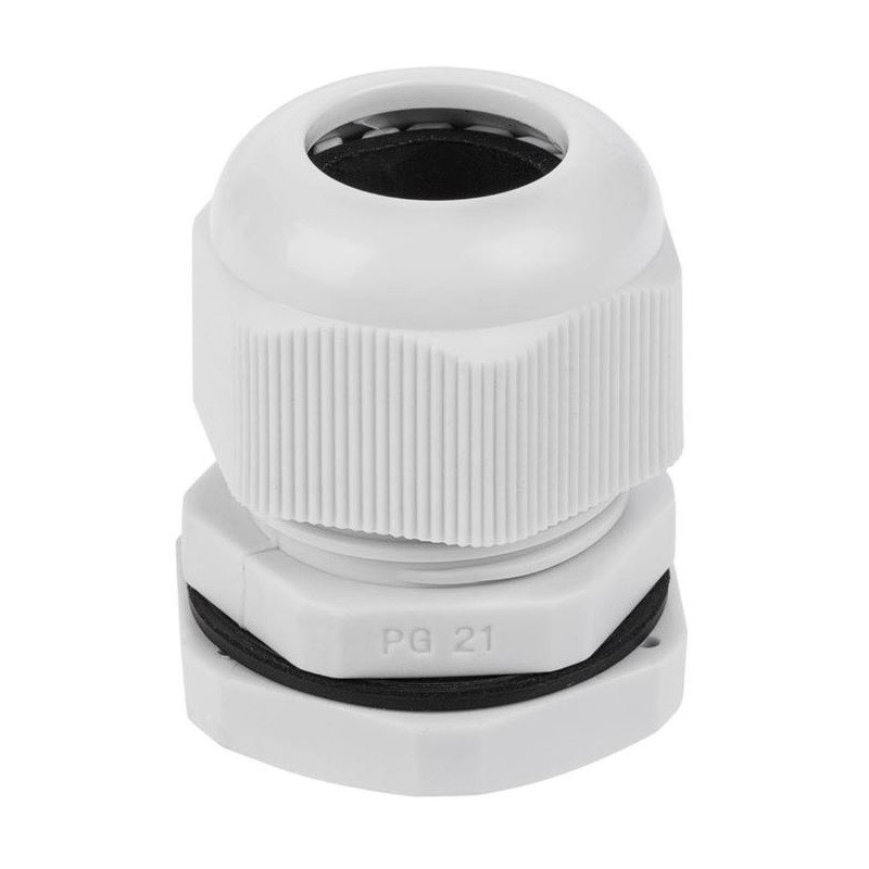 Dławik PG21 ma gwint PG21 i jest przeznaczony do przewodów o średnicy zewnętrznej od 14,0 do 18,0 mm. Dzięki temu jest wszechstronny i można go zastosować w różnych instalacjach, zarówno w przemyśle, jak i w instalacjach domowych. Szeroki zakres temperatury pracy od -30°C do +80°C sprawia, że dławik ten może być używany w różnorodnych warunkach klimatycznych, co czyni go idealnym do użytku na zewnątrz oraz wewnątrz budynków. Dławik PG21 w kolorze szarym jest estetyczny i dyskretny, co sprawia, że doskonale wpasowuje się w różnorodne instalacje, nie zaburzając ich wyglądu. Jest łatwy w montażu, co jest dużym atutem w sytuacjach, gdzie liczy się czas i prostota instalacji. Dzięki swojej konstrukcji, zapewnia bezpieczne i trwałe połączenie przewodów z obudową, co minimalizuje ryzyko uszkodzeń mechanicznych oraz chroni przewody przed czynnikami zewnętrznymi.