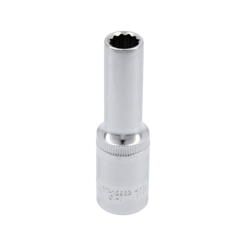 Nasadka dwunastokątna 1/2" 10 mm YT-12932 marki YATO to narzędzie, które charakteryzuje się wysoką jakością wykonania oraz doskonałymi parametrami technicznymi, co czyni ją idealnym wyborem dla profesjonalistów i majsterkowiczów. Jej uchwyt narzędziowy ma standardowy rozmiar 1/2" (12.7 mm), co zapewnia kompatybilność z większością kluczy nasadowych i grzechotek dostępnych na rynku, oferując szeroką wszechstronność zastosowań. Jest to nasadka dwunastokątna i długa, co umożliwia precyzyjne dopasowanie i skuteczne działanie nawet w trudnodostępnych miejscach. Długość nasadki wynosi 77 mm, co pozwala na komfortowe manewrowanie w ograniczonej przestrzeni roboczej. Jej średnica zewnętrzna wynosi 16 mm, a średnica z zabierakiem 22 mm, co zapewnia stabilne i pewne trzymanie.