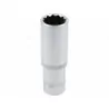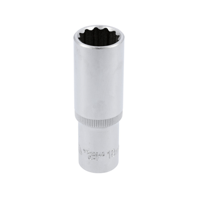 Nasadka dwunastokątna 1/2" 18 mm YT-12940 marki YATO to narzędzie, które charakteryzuje się wysoką jakością wykonania oraz doskonałymi parametrami technicznymi, co czyni ją idealnym wyborem dla profesjonalistów i majsterkowiczów. Jej uchwyt narzędziowy ma standardowy rozmiar 1/2" (12.7 mm), co zapewnia kompatybilność z większością kluczy nasadowych i grzechotek dostępnych na rynku, oferując szeroką wszechstronność zastosowań. Jest to nasadka dwunastokątna i długa, co umożliwia precyzyjne dopasowanie i skuteczne działanie nawet w trudnodostępnych miejscach. Długość nasadki wynosi 77 mm, co pozwala na komfortowe manewrowanie w ograniczonej przestrzeni roboczej. Jej średnica zewnętrzna wynosi 26 mm, a średnica z zabierakiem 22 mm, co zapewnia stabilne i pewne trzymanie.
