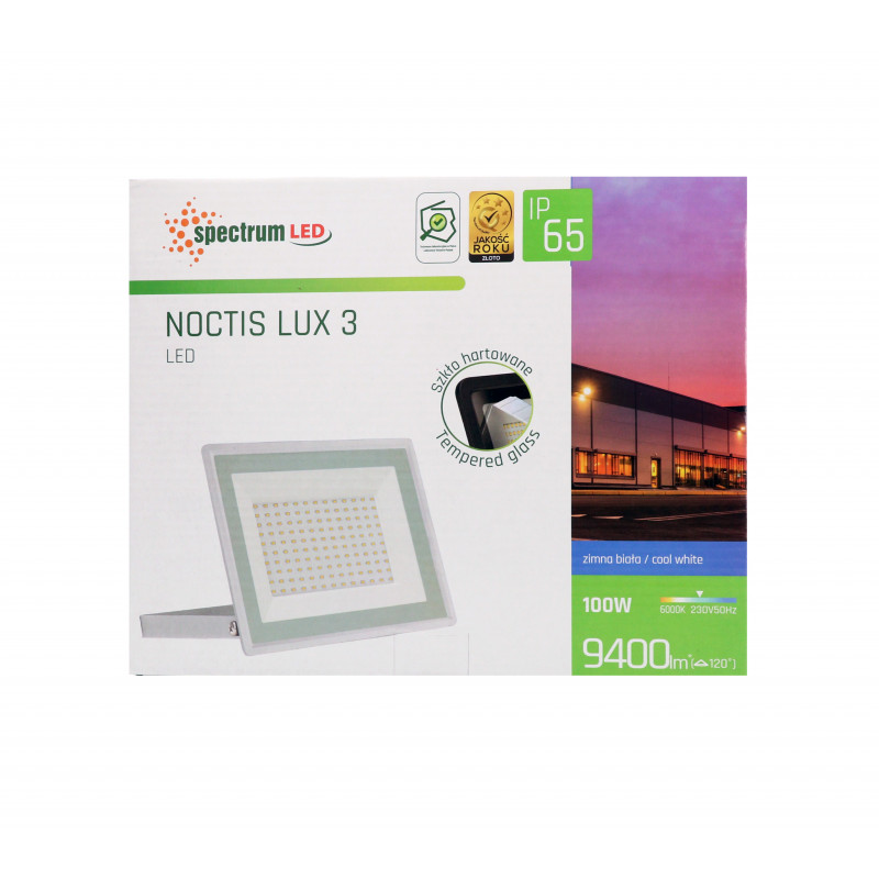 Energooszczędny naświetlacz LED NOCTIS LUX-3 o mocy 100W to produkt najwyższej jakości. Lampa posiada wbudowane, niewymienne źródło światła LED, strumień świetlny wynosi 9400 lm. Ten produkt świeci zimną barwą światła a kąt rozsyłu światłości wynosi 100°.