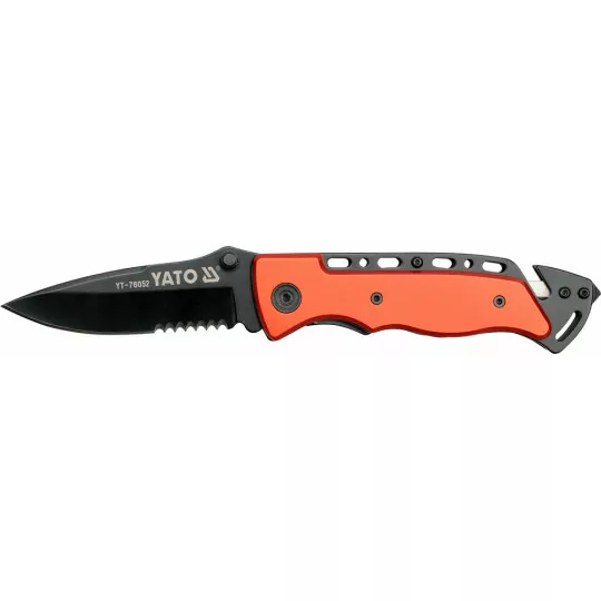 Nóż składany marki YATO jest zarówno przydatnym gadżetem jak i wielofunkcyjnym narzędziem. Scyzoryk służy do przecinania, podcinania oraz ścinania. Takie rodzaje ostrzy najczęściej znajdują się w kieszeni czy plecaku zapalonego wędkarza, grzybiarza czy miłośnika surwiwalu. Za pomocą tego noża z łatwością przygotujesz sobie posiłek czy zdobędziesz gałązki na rozpalenie ogniska.
