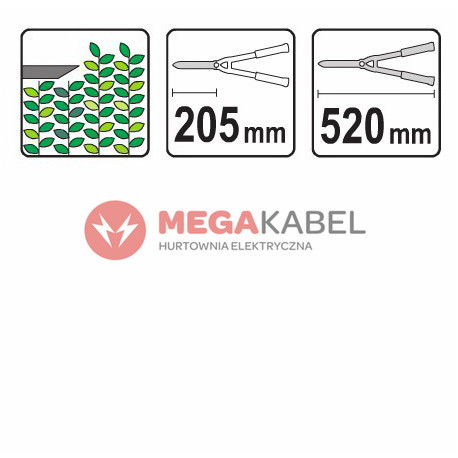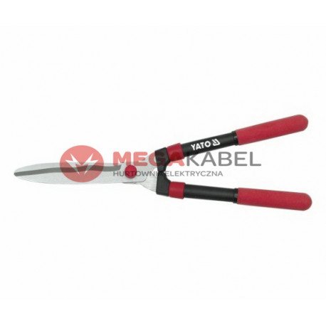 Nożyce do żywopłotu YT-8821 marki YATO o długości całkowitej 520 mm. Model ten został wykonany ze stali nierdzewnej oraz wysokiej jakości tworzywa sztucznego, z którego wykonana jest rączka.