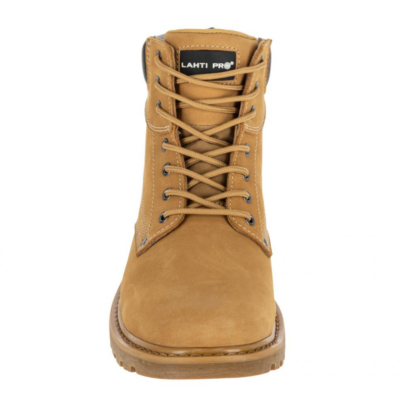 Buty męskie Lahti Pro L30128 w kolorze jasnobrązowym to połączenie ponadczasowego stylu i funkcjonalności obuwia zawodowego. Wykonane z wysokiej jakości nubukowej skóry licowej, zapewniają trwałość, wygodę i ochronę przed wilgocią. Idealne do pracy w wymagających warunkach, ale również jako wygodne obuwie codzienne.