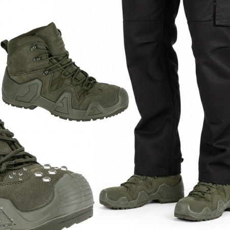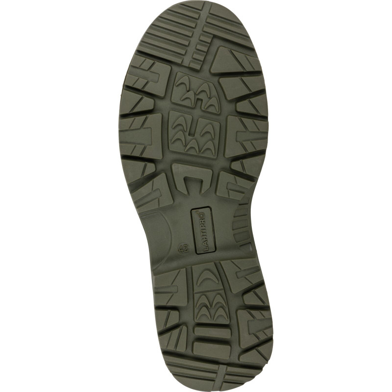 Buty Lahti Pro L30127 w kolorze oliwkowym to połączenie wytrzymałej konstrukcji, ochrony przed wilgocią i wysokiego komfortu użytkowania. Dzięki zastosowaniu skóry zamszowej oraz tkaniny typu Oxford o właściwościach hydrofobowych, obuwie sprawdzi się w pracy oraz podczas wędrówek w trudnym terenie.