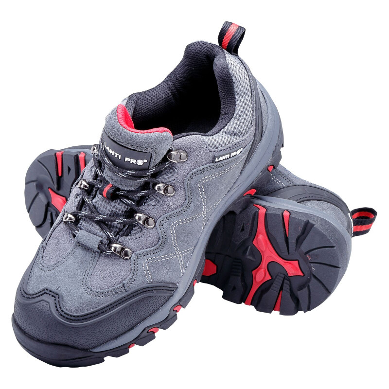 Buty pochodzą z kolekcji obuwia marki Lahti Pro. Wierzch wykonany jest ze skóry zamszowej. Podszewka z dzianiny siatkowej. Wyściółka jest wymienna. Podeszwa jest z gumy o nowoczesnej linii wzorniczej. Głęboki protektor zapewnia wysoką stabilność obuwia. Wysokiej jakości metalowe szlufki oraz zewnętrzna konstrukcja buta wzmocniona specjalnym tworzywem TPR. Obuwie posiada certyfikat CE i normę ISO 20347:2011. Jest w drugiej kategorii środków ochrony indywidualnej.