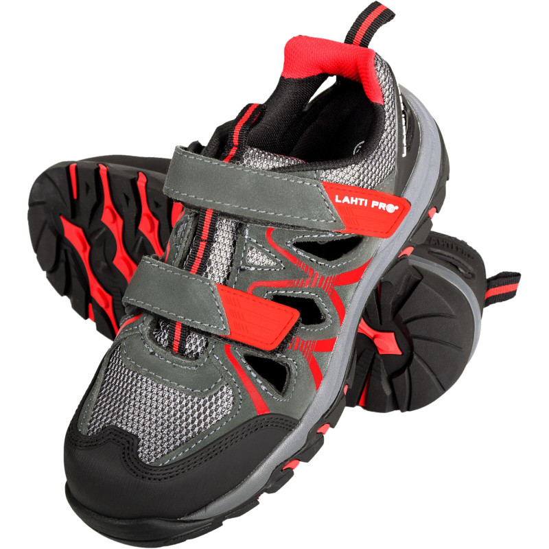 Sandały męskie Lahti Pro L30603 z podnoskiem kompozytowym to część najnowszej kolekcji butów roboczych zaprojektowanych specjalnie dla mężczyzn. Ich wierzch wykonany jest ze skóry zamszowej z dodatkiem dzianiny siatkowej, co zapewnia lepszą wentylację stopy. Gumowana podeszwa zapewnia ochronę przed poślizgiem na podłożach stalowych i ceramicznych, natomiast podnosek kompozytowy chroni stopę przed uderzeniami. Buty są zgodne z normą ISO 20345, posiadają certyfikat CE oraz znajdują się w drugiej kategorii środków ochrony indywidualnej.