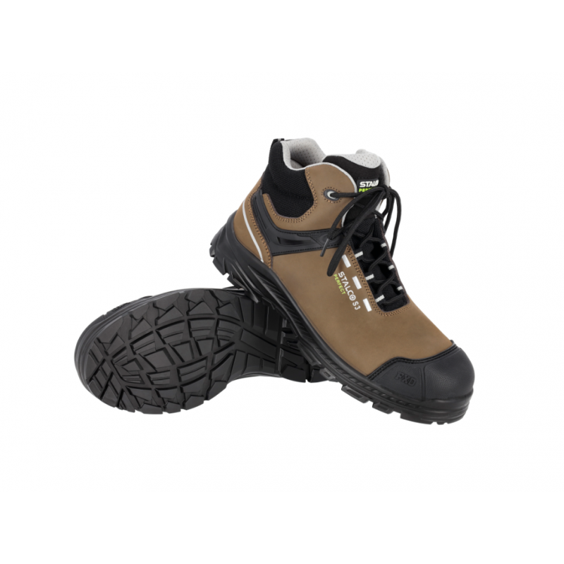 Podeszwa dwukomponentowa PU/PU gwarantuje doskonałą odporność na przetarcia oraz elastyczność, zapewniając stabilność na różnorodnych powierzchniach. Podeszwa antypoślizgowa SR/SRC minimalizuje ryzyko poślizgu na podłożach ceramicznych i stalowych, co jest istotne w miejscach pracy wymagających wysokiego poziomu bezpieczeństwa. Dodatkowo, podeszwa jest olejoodporna, co jest istotne w środowiskach przemysłowych. Buty posiadają także podeszwę antyelektrostatyczną, która zapobiega elektrycznemu naładowaniu użytkownika.