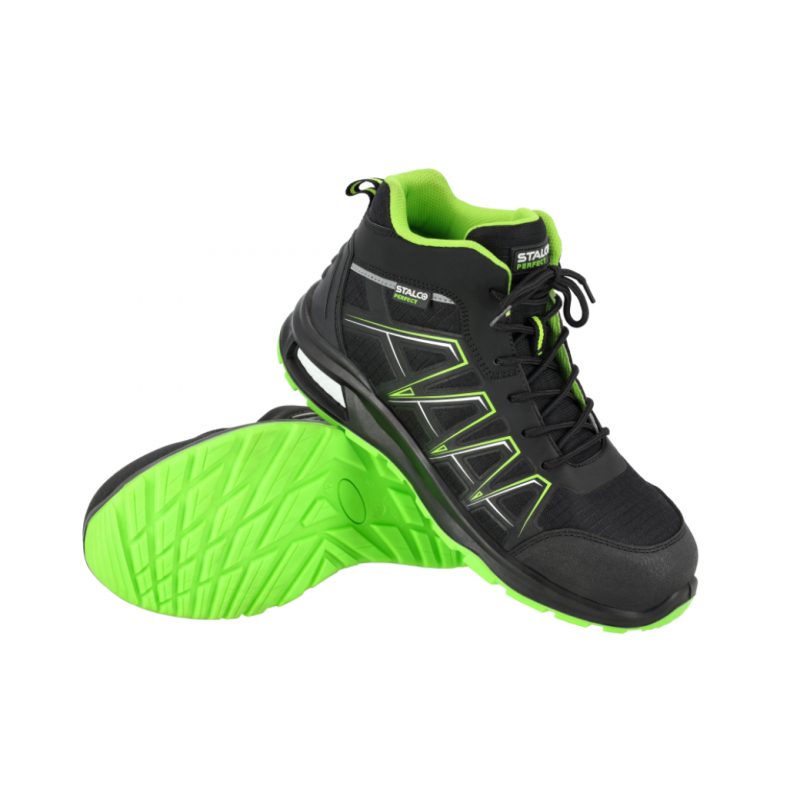 Zabudowana pięta trzewików stabilizuje stopę podczas pracy na nierównym terenie, chroniąc stawy i zapobiegając skręceniom. System Anti-shock redukuje obciążenia stawów i kręgosłupa, zapewniając komfort podczas chodzenia po nierównym terenie. Podeszwa poliuretanowa PU z ETPU zapewnia doskonałą amortyzację wstrząsów, co chroni nogi, plecy i całe ciało przed przeciążeniami. Jest również antyelektrostatyczna i olejoodporna, co podnosi bezpieczeństwo i funkcjonalność obuwia. Podeszwa ta posiada certyfikowaną odporność antypoślizgową SRC, zapewniając stabilność i pewność kroków na każdym podłożu.