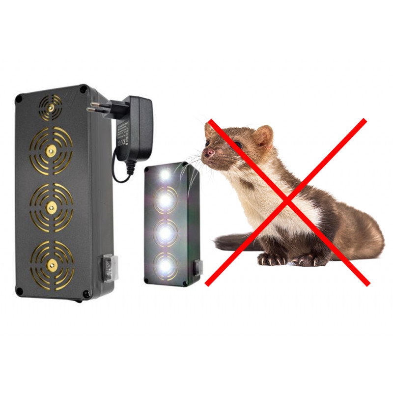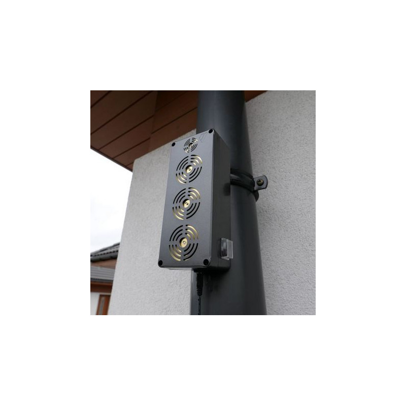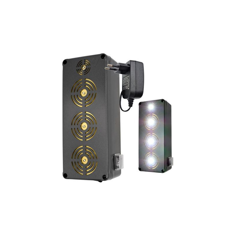 Odstraszacz KING-LED to największy i najmocniejszy z dostępnych na rynku odstraszaczy. W urządzeniu zainstalowano wysoce efektywne, profesjonale emitery ultradźwięków piezo oraz mocne diody błyskowe wysokiej jasności – takie połączenie gwarantuje największą skuteczność w walce ze szkodnikami. Urządzenie bez problemu radzi sobie z odstraszaniem kun, łasic, szczurów i myszy. Urządzenie do użytku zewnętrznego oraz do użytku wewnętrznego.