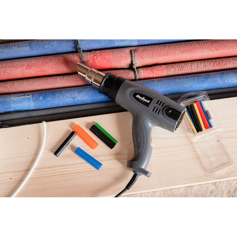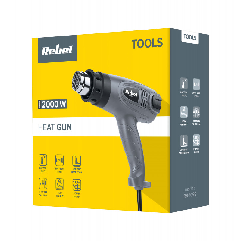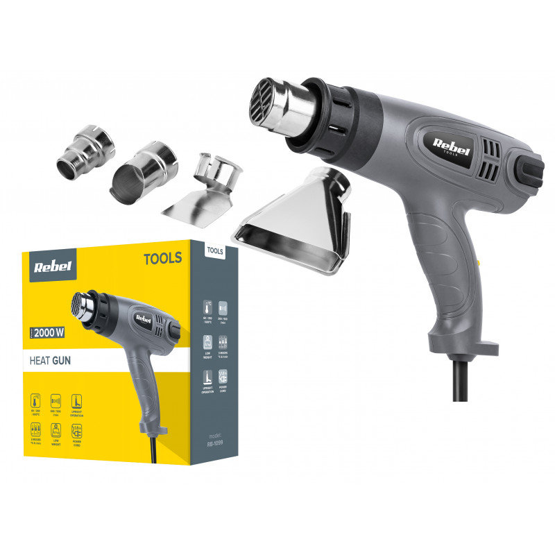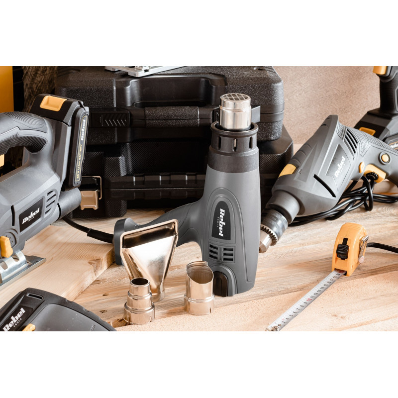 Wśród elektronarzędzi w Twoim warsztacie nie może zabraknąć opalarki Rebel Tools. Urządzenie to posiada trzy poziomy ustawienia temperatury i przepływu powietrza, co w połączeniu z czterema nasadkami na dyszę, pozwoli wykorzystać je nie tylko do usuwania starych powłok malarskich, ale też do wielu innych zastosowań np. zgrzewania elementów z tworzyw sztucznych, odmrażania rur, suszenia pomalowanych powierzchni czy odklejania naklejek. Aby zapewnić maksymalny komfort i skuteczność w czasie pracy, opalarka Rebel Tools przystosowana została także do pracy dyszą do góry, co może się przydać podczas wychładzania urządzenia lub długotrwałej pracy wymagającej, by strumień ciepłego powietrza był skierowany pionowo do góry.