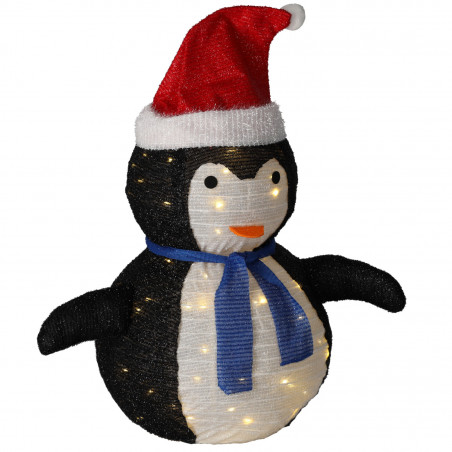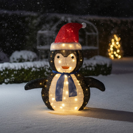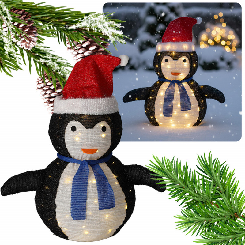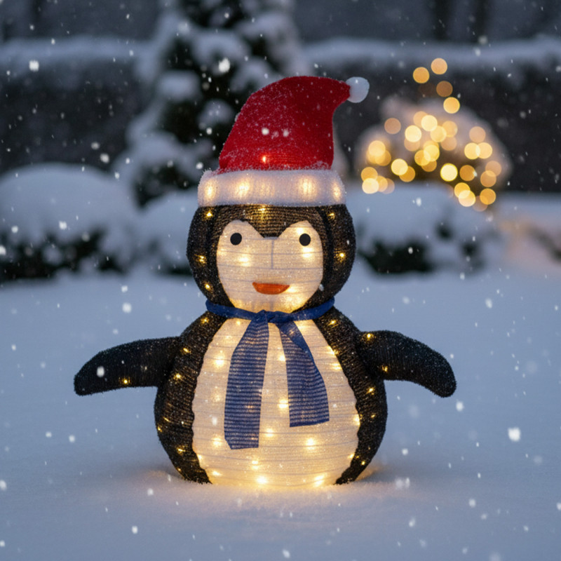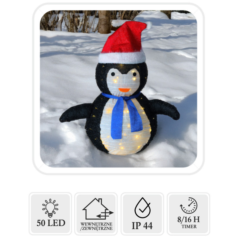 Dzięki klasie szczelności IP44 pingwin jest odporny na wilgoć i warunki atmosferyczne, co pozwala bezpiecznie stosować go na zewnątrz przez cały sezon świąteczny.