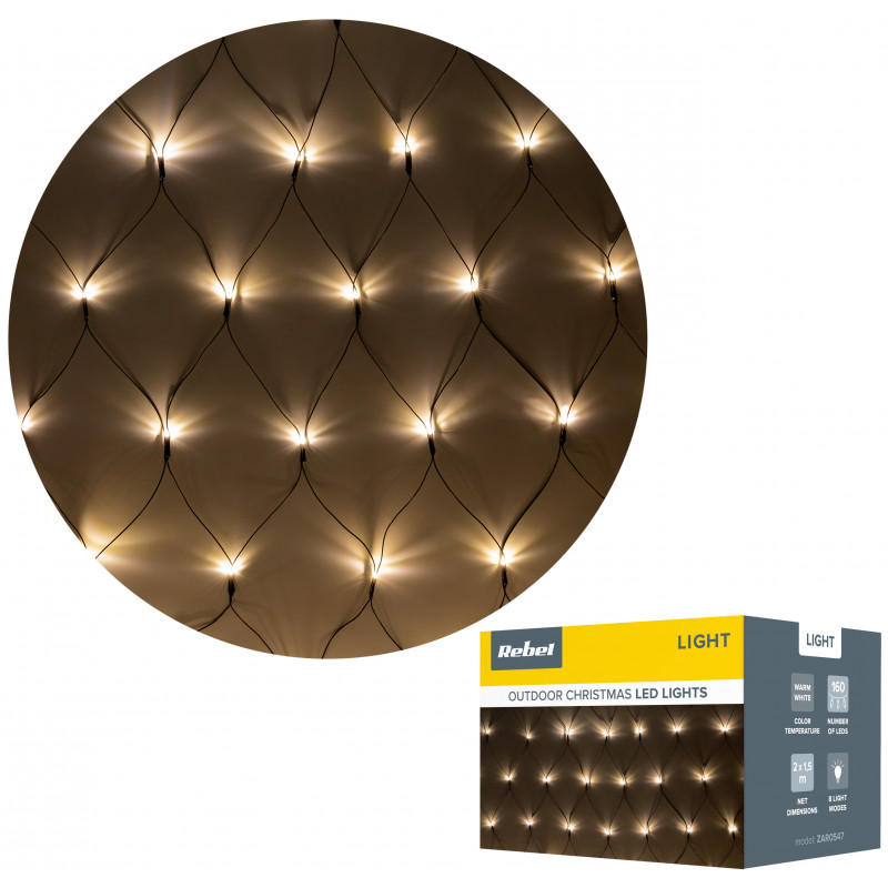 Punkty świetlne, tworzą efektowne oświetlenie świąteczne. To solidnie wykonane i energooszczędne ozdoby. Idealne do wykorzystania jako światełka choinkowe czy dekoracje świetlne. Wymiary kompletu wynoszą 2x1,5m.