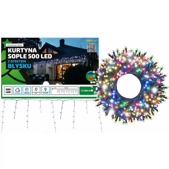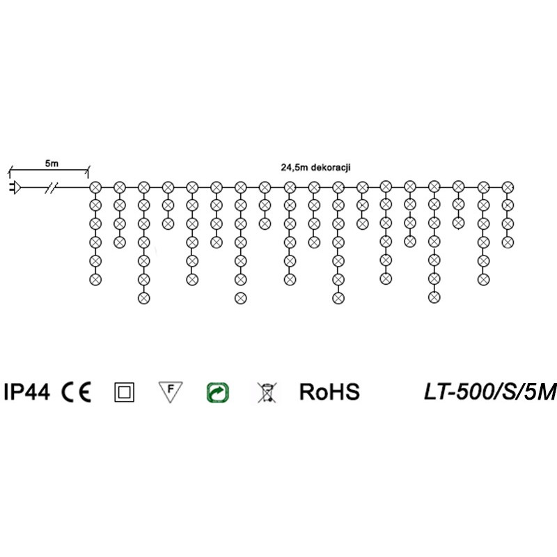 500 zwisających diod LED w wiązkach o różnej długości tworzy charakterystyczne sopelki świetlne. Świetnie prezentują się jako świąteczna dekoracja werandy, tarasu czy balkonu.