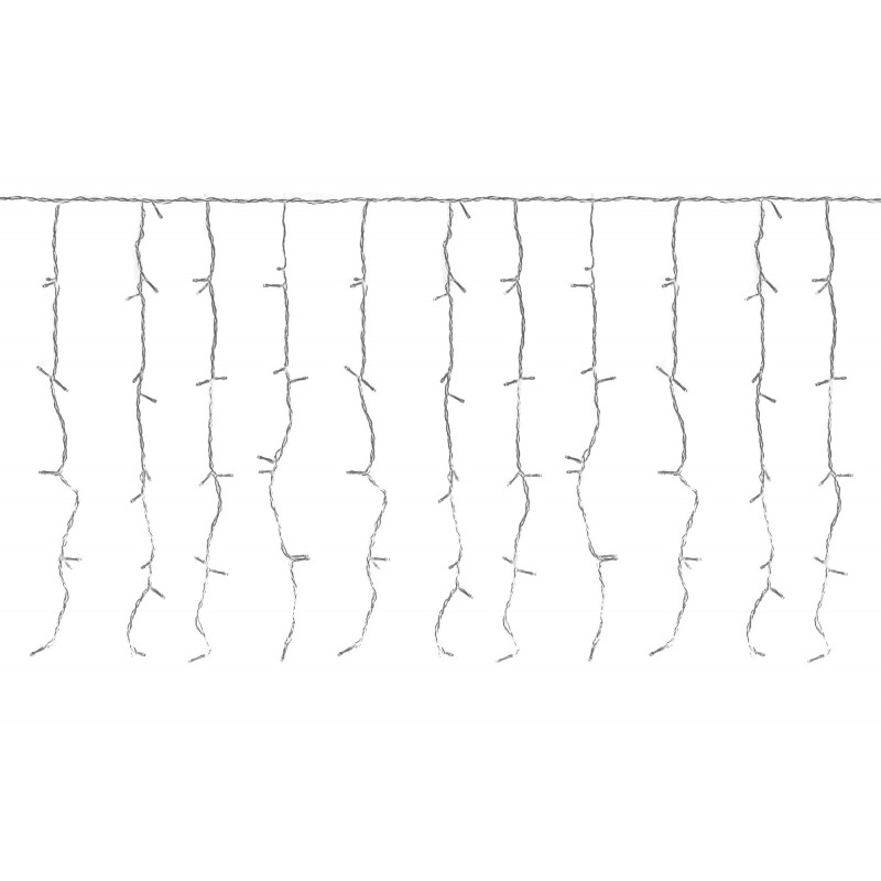 Kurtyna sople LED do zastosowania na zewnątrz Twojego domu jako ozdoba bożonarodzeniowa. 330 zwisających diod LED w wiązkach tworzy charakterystyczne sopelki świetlne. Świetnie prezentują się jako świąteczna dekoracja werandy, tarasu czy balkonu. 5m dekoracji na wyposażone jest w dodatkowe gniazdo, które umożliwia łączenie dwóch kompletów lampek, tworząc długi łańcuch choinkowy zasilany z jednej wtyczki.