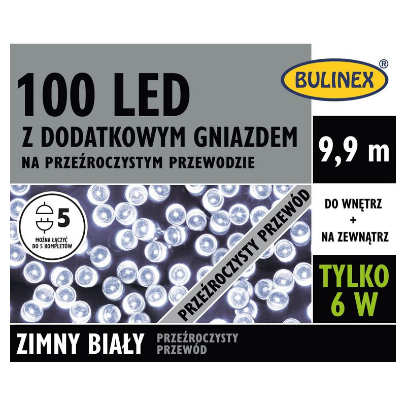 Lampki zostały wyposażone w dodatkowe gniazdo końcowe, które pozwala na łączenie maksymalnie 5 kompletów w jednym obwodzie. Taka opcja umożliwia stworzenie większych dekoracji świetlnych w prosty sposób. Idealnie sprawdzą się zarówno na choince, jak i w ozdobach ogrodowych.