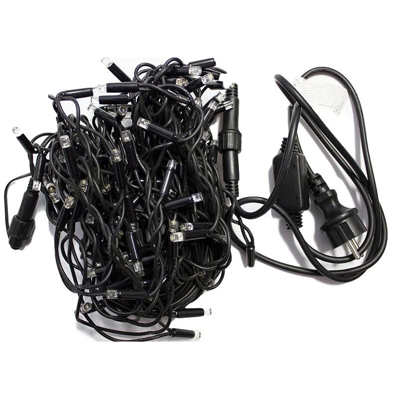 10m dekoracji na czarnym przewodzie w 3 wariantach kolorystycznych, w każdym co 10 dioda jest migająca w kolorze zimnym białym, kreując tzw. flash effect.