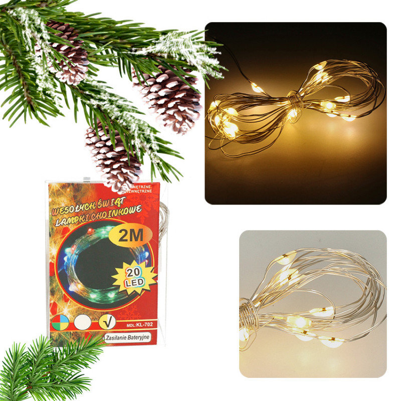 Lampki choinkowe na druciku z 20 diodami LED to idealny sposób na delikatne i nastrojowe oświetlenie. Emitują ciepłe światło o barwie 3000K, tworząc przytulną atmosferę w każdym wnętrzu. Doskonale sprawdzą się do dekoracji świątecznych, stołów czy girland.