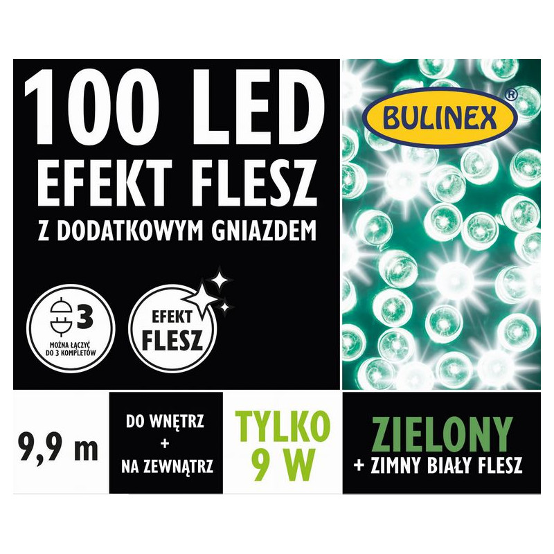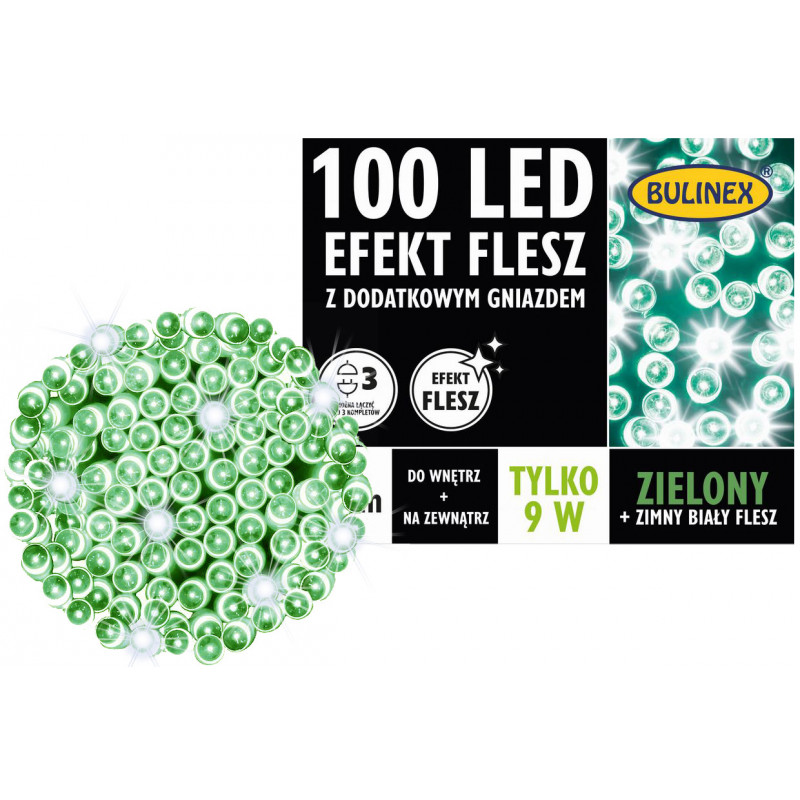 Lampki choinkowe stanowią doskonały sposób na stworzenie ciepłej i przytulnej atmosfery w Twoim domu oraz wokół niego. Te światełka od marki BULINEX to 100 diod LED o barwie zielonej + flash, które dodadzą uroku każdej przestrzeni. Wykonane z dbałością o najwyższą jakość, potrafią zachwycić zarówno podczas świąt bożonarodzeniowych, jak również podczas letnich wieczorów na tarasie czy w ogrodzie.