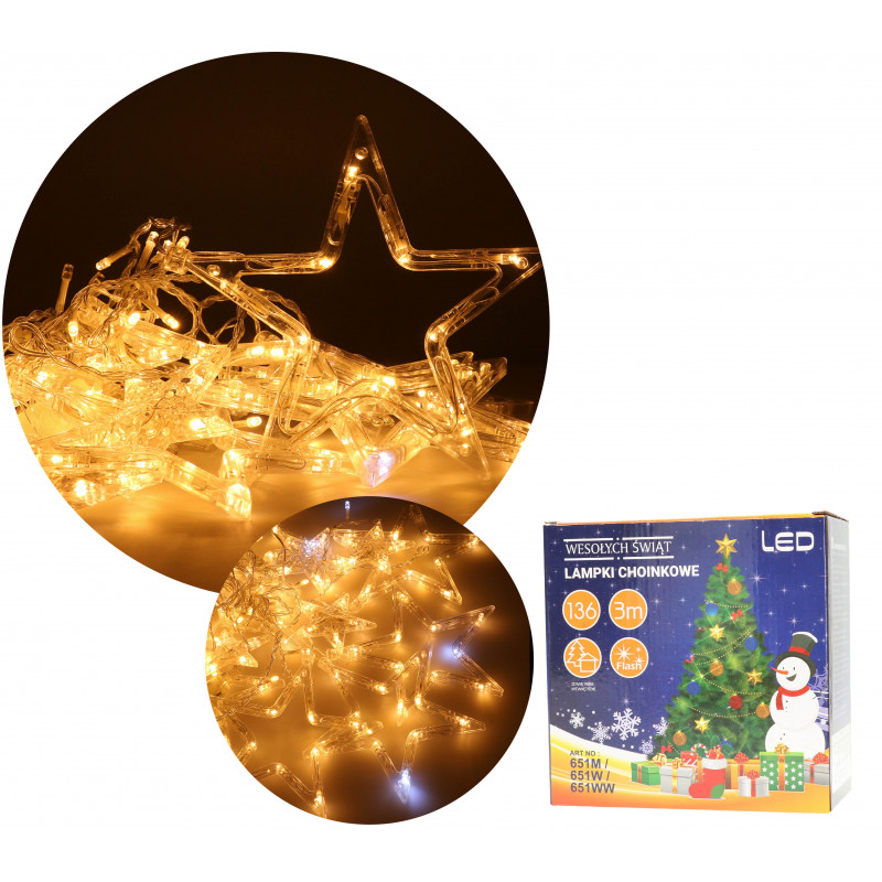 Punkty świetlne, tworzą efektowne oświetlenie świąteczne, które dzięki stopniu ochrony IP44 z powodzeniem można zastosować jako oświetlenie do ogrodu oraz do Twojego domu. Oświetlenie wyposażone jest w przewód zasilający o długości 1,1m oraz dekorację o długości 3m.