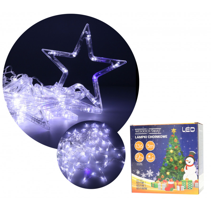 Punkty świetlne, tworzą efektowne oświetlenie świąteczne, które dzięki stopniu ochrony IP44 z powodzeniem można zastosować jako oświetlenie do ogrodu oraz do Twojego domu. Oświetlenie wyposażone jest w przewód zasilający o długości 1,1m oraz dekorację o długości 3m.