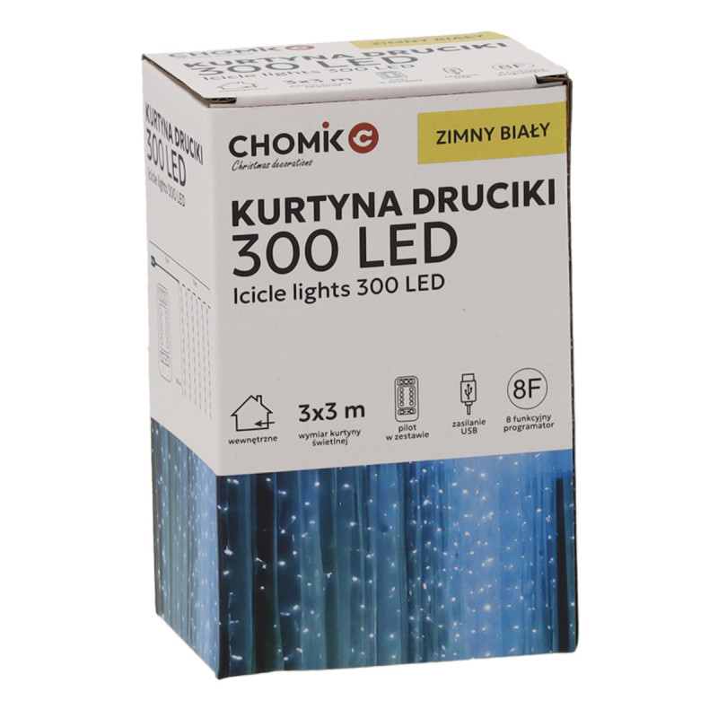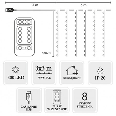 Kurtyna świetlna z 300 diodami LED w zimnej barwie to doskonałe rozwiązanie do dekoracji wnętrz. Jej delikatne światło wprowadza przytulną i magiczną atmosferę, idealną na święta czy imprezy. Dzięki rozmiarowi 3 x 3m jest świetnym wyborem do dużych powierzchni, takich jak ściany czy okna.
