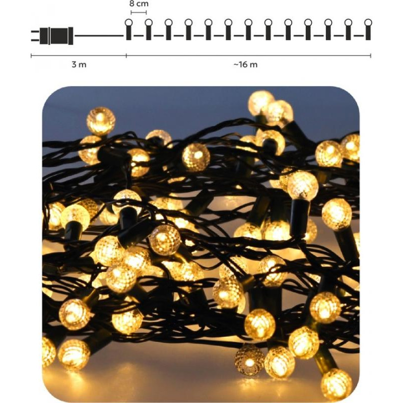 Lampki mają długość całkowitą 19 metrów, w tym 16 metrów części świetlnej i 3-metrowy przewód zasilający. Zielony przewód dyskretnie wtapia się w otoczenie, zapewniając estetyczny wygląd. Dodatkowo możliwość połączenia do trzech zestawów pozwala na oświetlenie większych przestrzeni.