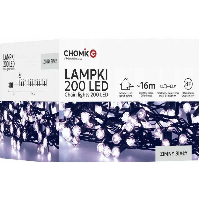 Lampki choinkowe CHERRY BALL 200 LED w zimnej barwie światła to doskonały wybór dla tych, którzy szukają połączenia funkcjonalności i estetyki. Subtelne kulki LED tworzą przytulną, magiczną atmosferę, idealną na święta i inne okazje. Dzięki możliwości zastosowania zarówno wewnątrz, jak i na zewnątrz, dekoracja doskonale sprawdzi się w domu, ogrodzie czy na tarasie.