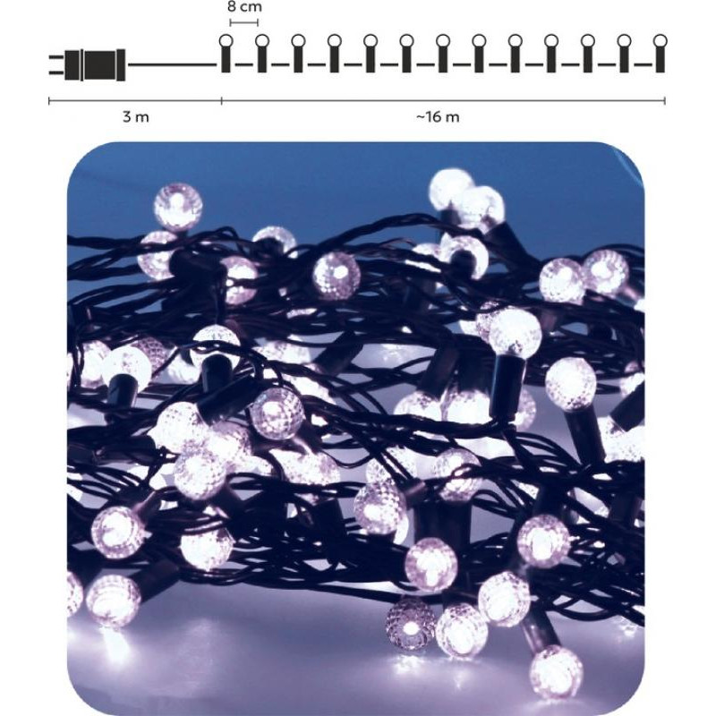 Lampki mają długość całkowitą 19 metrów, w tym 16 metrów części świetlnej i 3-metrowy przewód zasilający. Zielony przewód dyskretnie wtapia się w otoczenie, zapewniając estetyczny wygląd. Dodatkowo możliwość połączenia do trzech zestawów pozwala na oświetlenie większych przestrzeni.