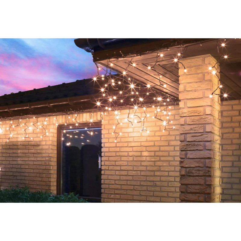 Długość dekoracji wynosi 9,6m, co zapewnia łatwą instalację na dachach, balustradach, balkonach, wokół drzew, murów, czy pergoli. Przewód jest dyskretny i nie przeszkadza w aranżacji przestrzeni. Ponadto lampki posiadają stopień IP44, co oznacza, że są odporne na wilgoć i mogą być używane na zewnątrz bez obaw o uszkodzenia.