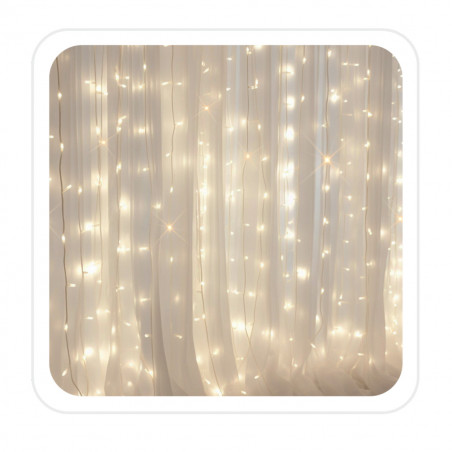 Kurtyna ma długość części świetlnej ~20 m i całkowitą ~23 m z przewodem zasilającym 3 m. Możliwość podłączenia do 3 szt. łańcuchów świetlnych pozwala na oświetlenie większych przestrzeni. Kolor przewodu i transformatora został dobrany tak, aby subtelnie wtapiać się w otoczenie.