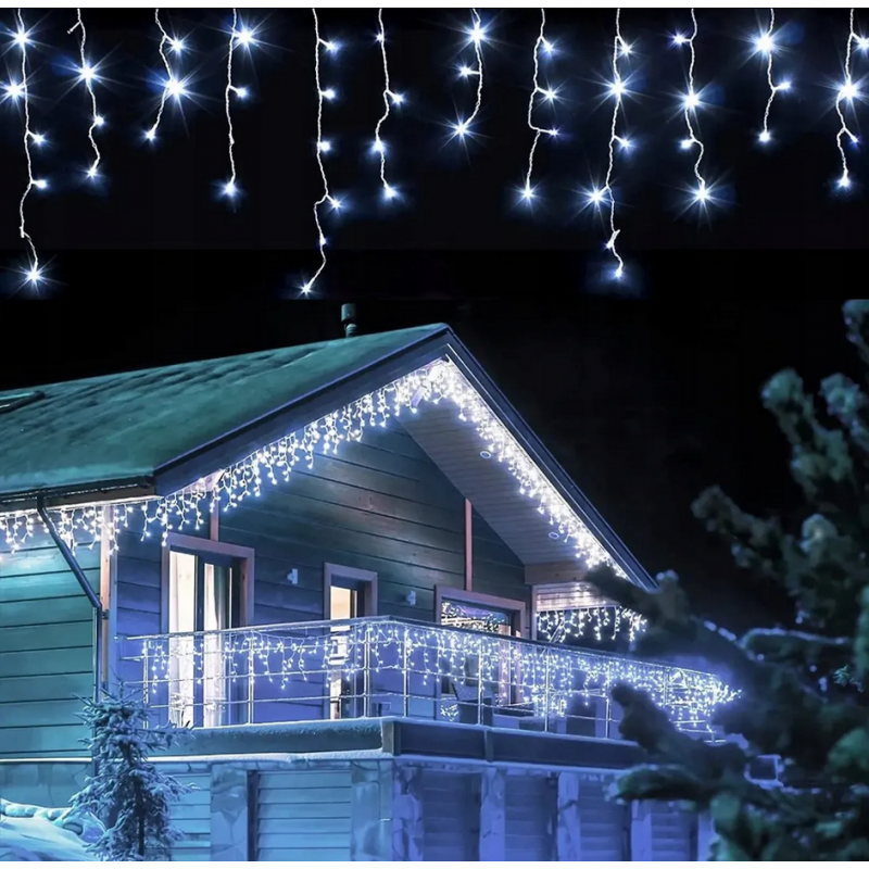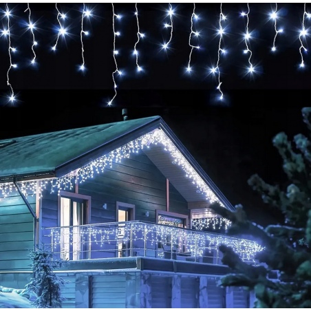 Dzięki funkcji flash co 10 LED, kurtyna zapewnia przyjemny efekt migania, który przyciąga wzrok i podkreśla świąteczną atmosferę. Soplowe końcówki mają różne długości, co tworzy realistyczny efekt opadającego lodu.