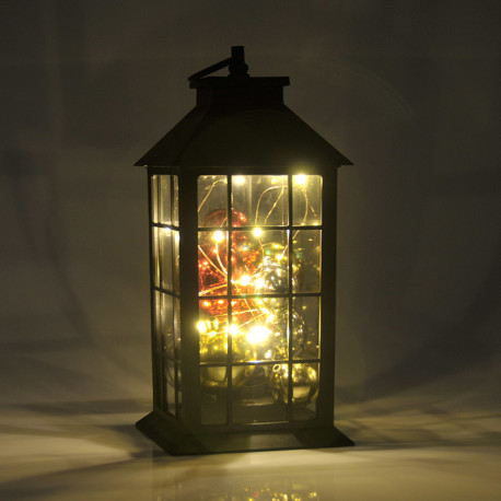 Dekoracyjna latarenka w tradycyjnym prostym kształcie w kolorze czarnym z bąbkami, zasilana przez 3 baterie AAA. Elegancka dekoracja pasująca do każdego wnętrza, a światło z lampek wewnątrz sprawia, że każde pomieszczenie nabiera ciepła i staje się przytulniejsze. Latarenka posiada wewnątrz malutkie lamki LED, które dają wyjątkowy efekt. Poprzez to, że nie trzeba stosować tradycyjnej świeczki produkt jest bezpieczny, bezpłomieniowy, bezdymny i długotrwały, bezpieczny dla dzieci, zwierząt domowych. Przemyślany wiszący pierścień, wygodny do zawieszenia w dowolnym miejscu i łatwy do zdjęcia, bez narzędzi.