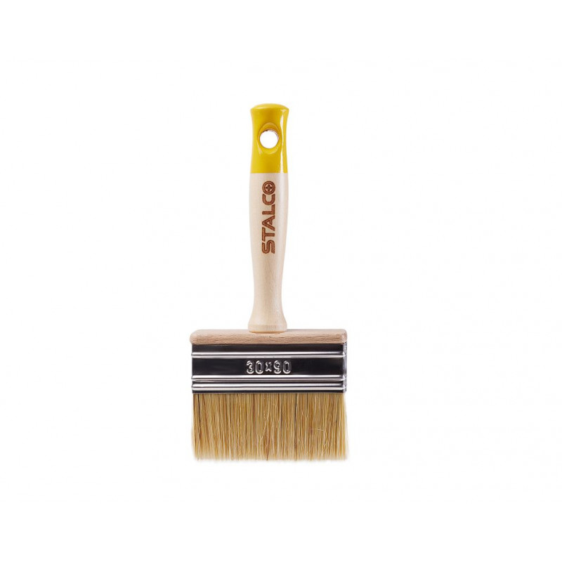 To profesjonalne narzędzie przeznaczone do precyzyjnego nakładania farb emulsyjnych, emalii oraz kleju tapetowego na różnorodne powierzchnie. Charakteryzuje się dużą powierzchnią włosia, co pozwala na szybkie i efektywne pokrywanie dużych powierzchni. Długie włosie doskonale radzi sobie z nierównościami i strukturalnymi materiałami, skracając czas pracy. Drewniany trzonek nie tylko zapewnia stabilny chwyt, ale również chroni dłoń użytkownika przed zabrudzeniem. Metalowa taśma mocująca solidnie łączy włosie z uchwytem, gwarantując trwałość i niezawodność podczas intensywnego użytkowania. To uniwersalne narzędzie, które znajduje zastosowanie zarówno w pracach remontowych, jak i wykończeniowych, zapewniając wysoką jakość wykonania i efektywność działania.