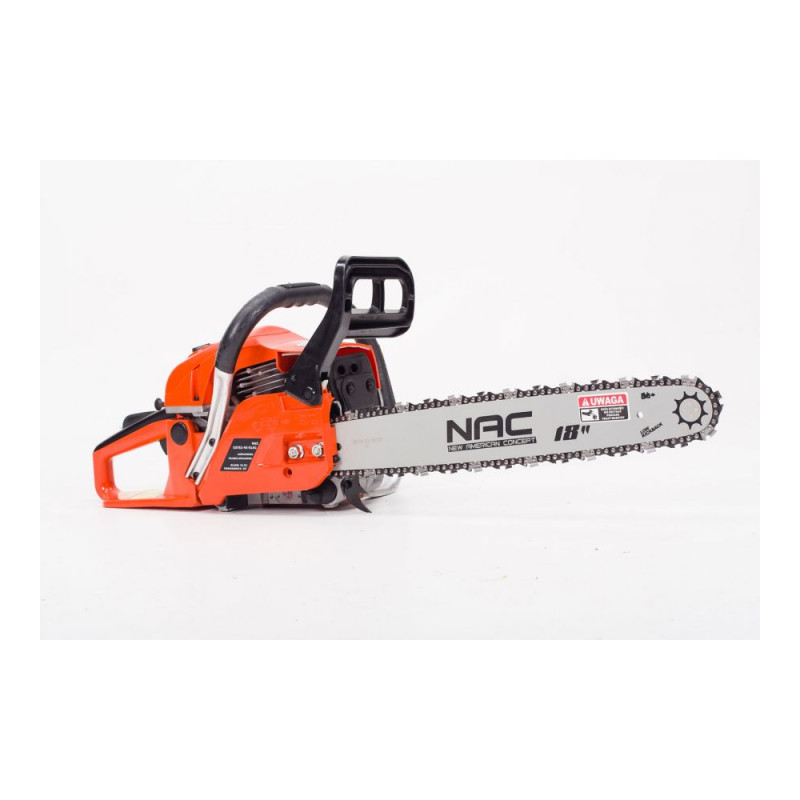 Pilarka spalinowa NAC CST52-45-01AC została wyposażona w silnik o dużej mocy o pojemności 49,3 cm 3 , o maksymalnym momencie obrotowym 2,8 Nm który świetnie poradzi sobie do wszelkich prac w ogrodzie, w gospodarstwie, na działce, na budowie oraz przy pracach w lesie.