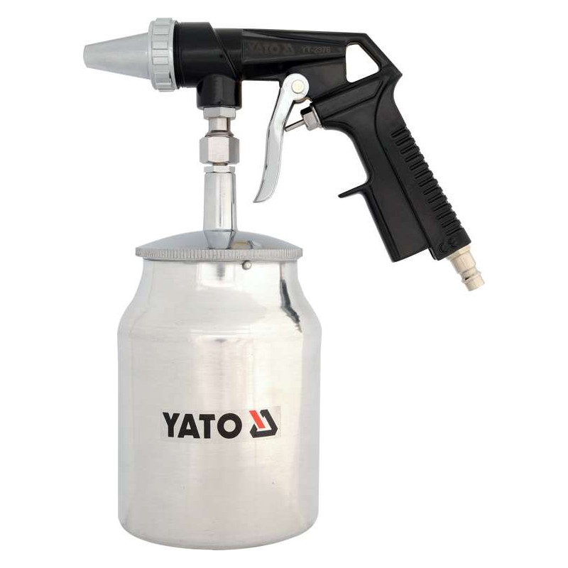 Pistolet do piaskowania YT-2376 marki YATO służy do oczyszczania powierzchni ze starych powłok lakierniczych, rdzy oraz innych zabrudzeń, a także do kształtowania powierzchni. Oczyszczanie odbywa się za pomocą strumienia sprężonego powietrza i materiału ściernego.
