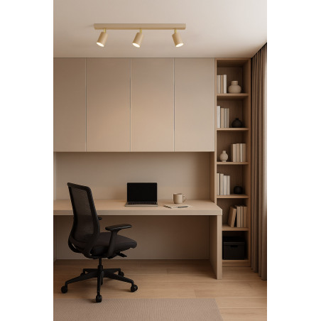 Lampa listwa sufitowa MATI-3 K-5822 KAJA to elegancka propozycja dla osób, które cenią stylowe i funkcjonalne rozwiązania. Beżowa armatura uzupełniona złotymi detalami nadaje wnętrzu ciepła i nowoczesnego charakteru, a trzy ruchome reflektory pozwalają na precyzyjne skierowanie światła. Dzięki takiemu rozwiązaniu lampa świetnie sprawdzi się nad stołem w jadalni, w kuchni czy w salonie, podkreślając wybrane elementy aranżacji.