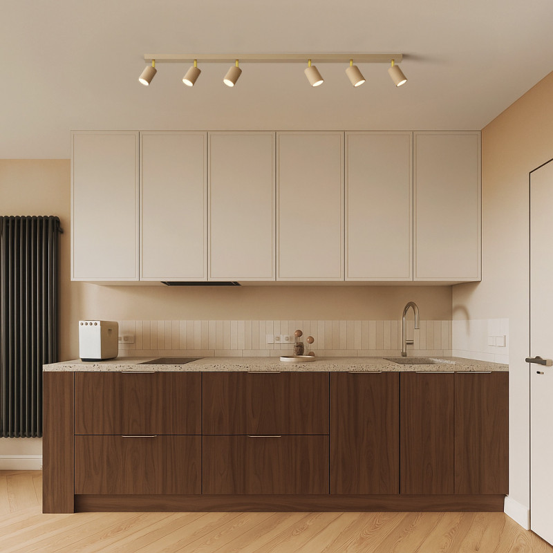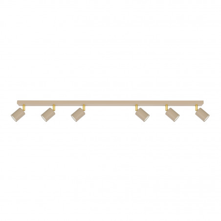 Lampa sufitowa MATI-6 K-5824 KAJA to propozycja dla osób, które potrzebują mocnego i elastycznego oświetlenia w eleganckiej formie. Beżowa listwa z subtelnymi złotymi akcentami tworzy wyrafinowaną kompozycję, która podkreśla charakter wnętrza i dodaje mu luksusowego klimatu. Sześć ruchomych reflektorów pozwala na indywidualne ustawienie kierunku światła, dzięki czemu łatwo oświetlić zarówno całą przestrzeń, jak i wybrane elementy aranżacji.