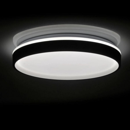 Oprawa została wykonana z wytrzymałego tworzywa sztucznego oraz stali, co zapewnia jej lekkość i trwałość. Montaż plafonu jest prosty i szybki, a czarno-biała kolorystyka z eleganckim wykończeniem doskonale wpisuje się w nowoczesne aranżacje.