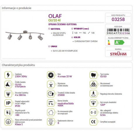 Lampa ścienno-sufitowa OLAF-4 GU10 LED 4x4W Struhm