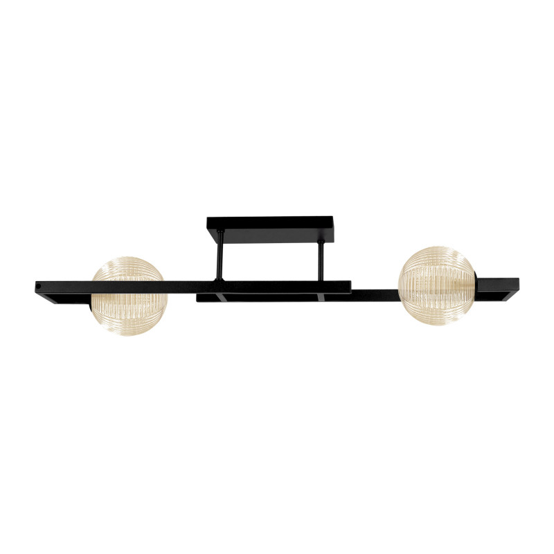 Lampa sufitowa EMIR K-5765 to połączenie nowoczesnego designu z subtelną elegancją. Jej czarna metalowa konstrukcja doskonale komponuje się z bursztynowymi, szklanymi kloszami, tworząc efektowny element dekoracyjny. Dzięki prostemu, geometrycznemu kształtowi pasuje zarówno do wnętrz loftowych, jak i nowoczesnych przestrzeni mieszkalnych.