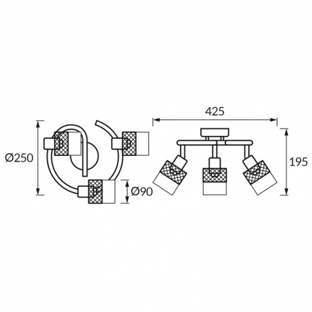Lampa wyposażona jest w 3 × E14 (max 40 W) i przystosowana do energooszczędnych żarówek LED. Możliwość regulacji kierunku świecenia pozwala precyzyjnie ustawić strumień światła, dopasowując go do indywidualnych potrzeb – jako oświetlenie ogólne lub punktowe. Wymienne źródła światła zapewniają swobodę wyboru barwy i mocy.
