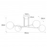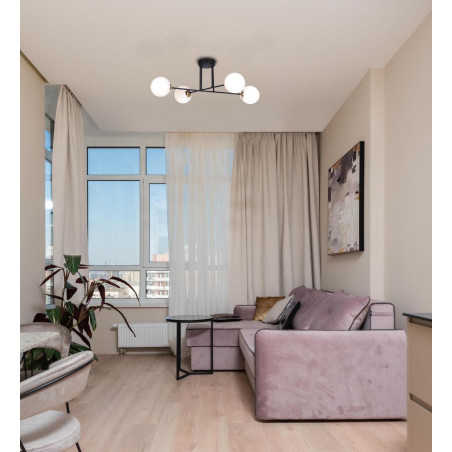 Model K-4914 składa się z czterech kulistych kloszy rozmieszczonych na skrzyżowanych ramionach. Całość ma 85 cm szerokości i 28 cm wysokości, co sprawia, że idealnie nadaje się do pomieszczeń z niższym sufitem. Lampę można z powodzeniem stosować w sypialni, salonie czy korytarzu.