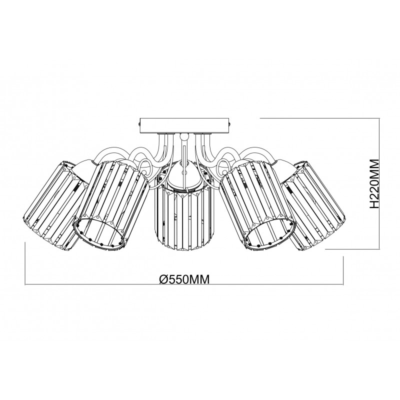 Lampa sufitowa VANI-5 FGD od Vitalux to eleganckie i nowoczesne oświetlenie, które doda wyjątkowego charakteru każdemu wnętrzu. Charakteryzująca się złotym wykończeniem, lampa łączy w sobie elegancję z nowoczesnym designem, co sprawia, że jest idealnym wyborem dla osób poszukujących stylowego i funkcjonalnego oświetlenia. Wymiary lampy wynoszą 550 mm szerokości i 220 mm wysokości, co czyni ją odpowiednią do większych przestrzeni, takich jak salon czy jadalnia. Jej rozmiar zapewnia szerokie rozproszenie światła, co pozwala na efektywne oświetlenie pomieszczenia oraz podkreślenie jego walorów estetycznych.