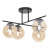 Lampa sufitowa DELTA K-5161 to stylowy żyrandol wyposażony w cztery bursztynowe klosze osadzone na metalowej konstrukcji malowanej proszkowo. Jej geometryczny układ i kontrastowe kolory sprawiają, że świetnie prezentuje się w salonie, jadalni czy sypialni. Połączenie czerni i bursztynu dodaje wnętrzu elegancji i ciepła.