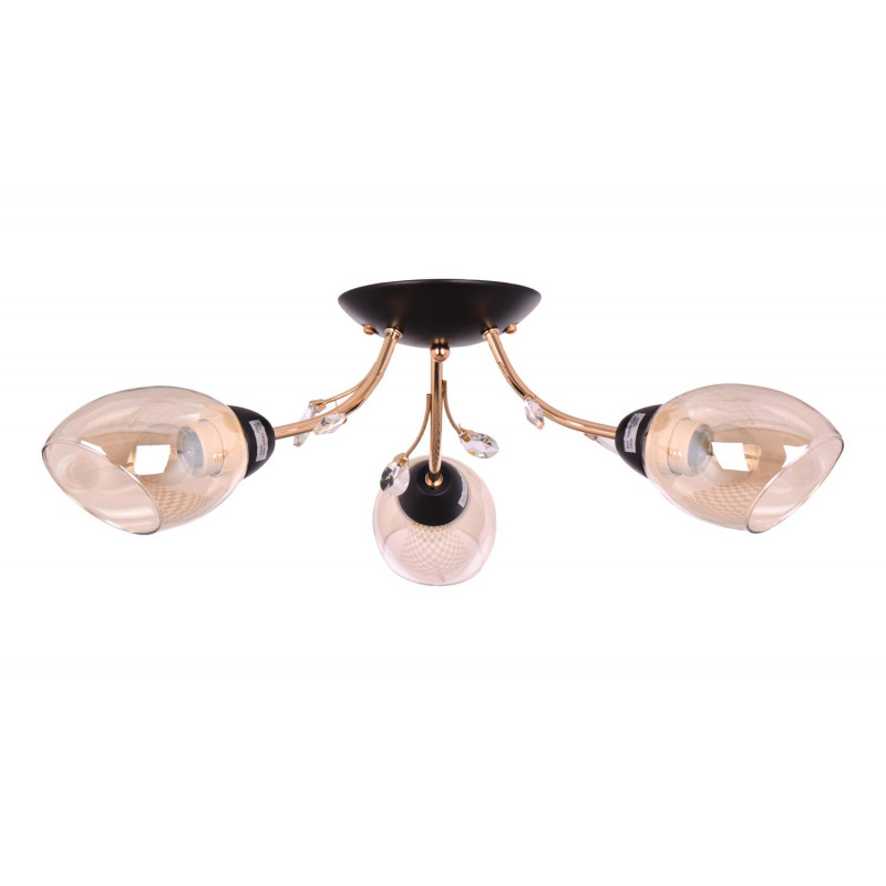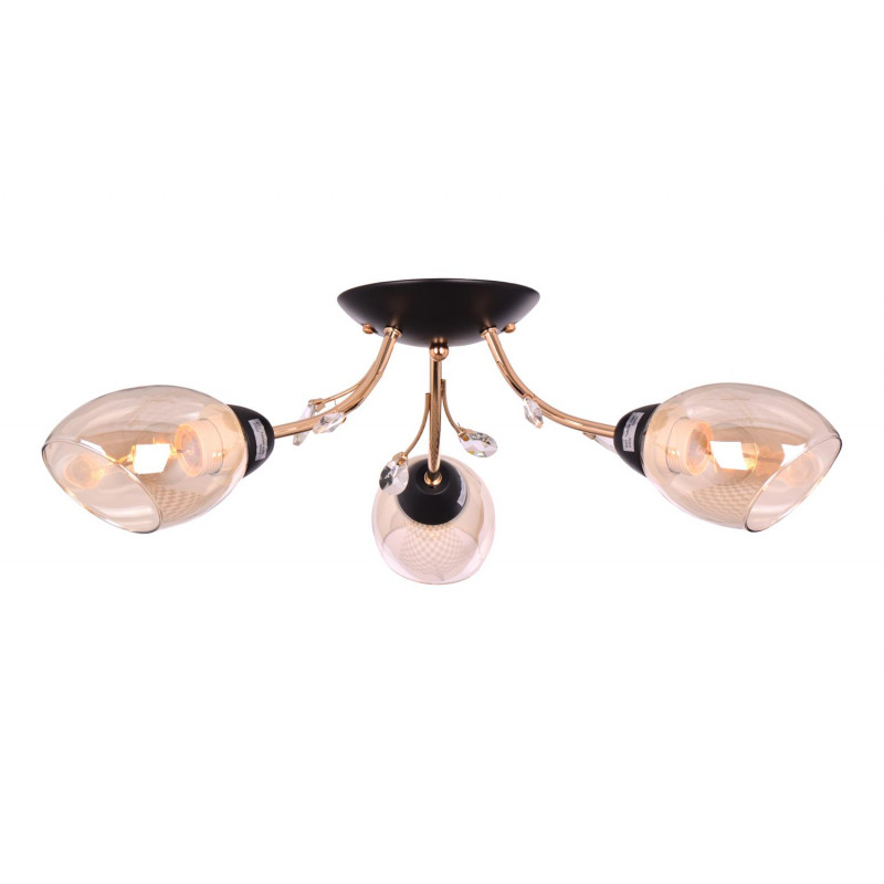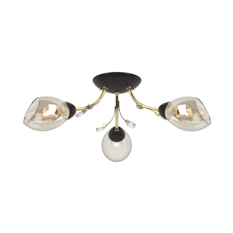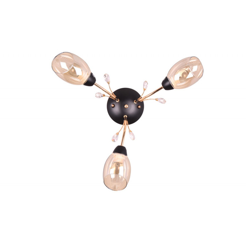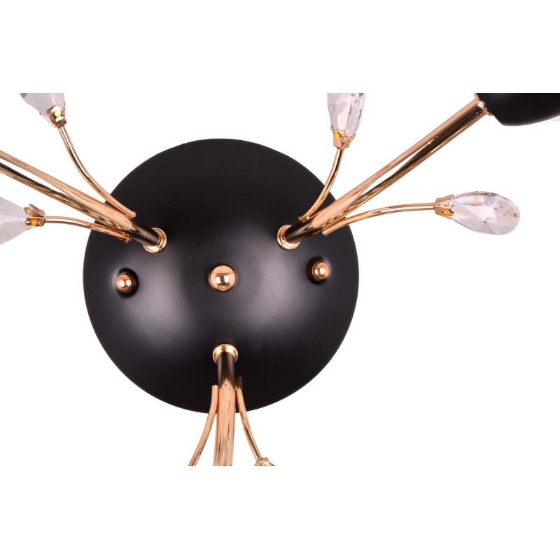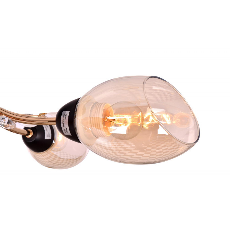 Plafon jest w kolorze czerni i złota oraz posiada pięć szklanych kloszy, które doskonale się ze sobą komponują, tworząc idealną całość. Drobne, delikatne dodatki w postaci kryształków sprawiają, że wprowadzi ona we wnętrza odrobinę luksusu i przyjemną atmosferę. Do produkcji wykorzystano tylko materiały najwyższej jakości, dzięki czemu będzie prezentowała się doskonale na każdym suficie.