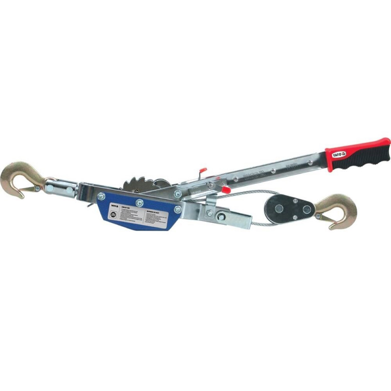 Wyciągarka linowa YT-5911 marki YATO to solidne i niezawodne narzędzie z napędem ręcznym, które doskonale sprawdza się w różnych pracach wymagających przeciągania ładunków w poziomie. Dzięki wysokiej jakości wykonaniu i wytrzymałym materiałom, wyciągarka ta jest idealnym rozwiązaniem dla osób potrzebujących precyzyjnego oraz bezpiecznego transportu ciężkich przedmiotów. Wyciągarka posiada maksymalną siłę uciągu wynoszącą 1000 daN, co przekłada się na zdolność przesuwania ładunków o wadze do około 1020 kg. Oznacza to, że jest wystarczająco wytrzymała, aby sprostać wielu zadaniom w środowisku przemysłowym, magazynowym czy budowlanym.