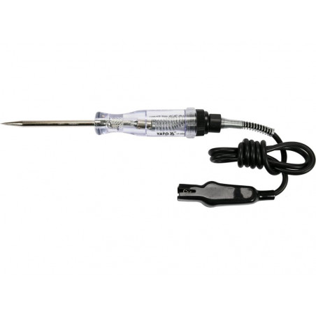 Próbnik został wyposażony w 900 mm linkę, co pozwala na komfortowe przeprowadzanie pomiarów w trudno dostępnych miejscach. Solidna konstrukcja oraz wysokiej jakości materiały gwarantują odporność na uszkodzenia mechaniczne i długą żywotność. Produkt jest bezpieczny w użyciu dzięki zastosowaniu izolacji chroniącej przed przypadkowym porażeniem prądem. Próbnik YATO to doskonały wybór dla mechaników, elektryków oraz pasjonatów motoryzacji.