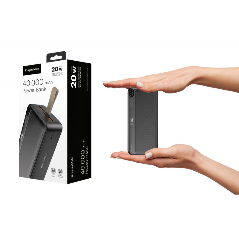 Zdarzają Ci się sytuacje, gdy bateria w telefonie lub laptopie jest na wyczerpaniu, a w pobliżu nie ma dostępu do gniazda sieciowego. W takiej sytuacji z pomocą przyjdzie najmocniejszy power bank Kruger&Matz KM0908.
